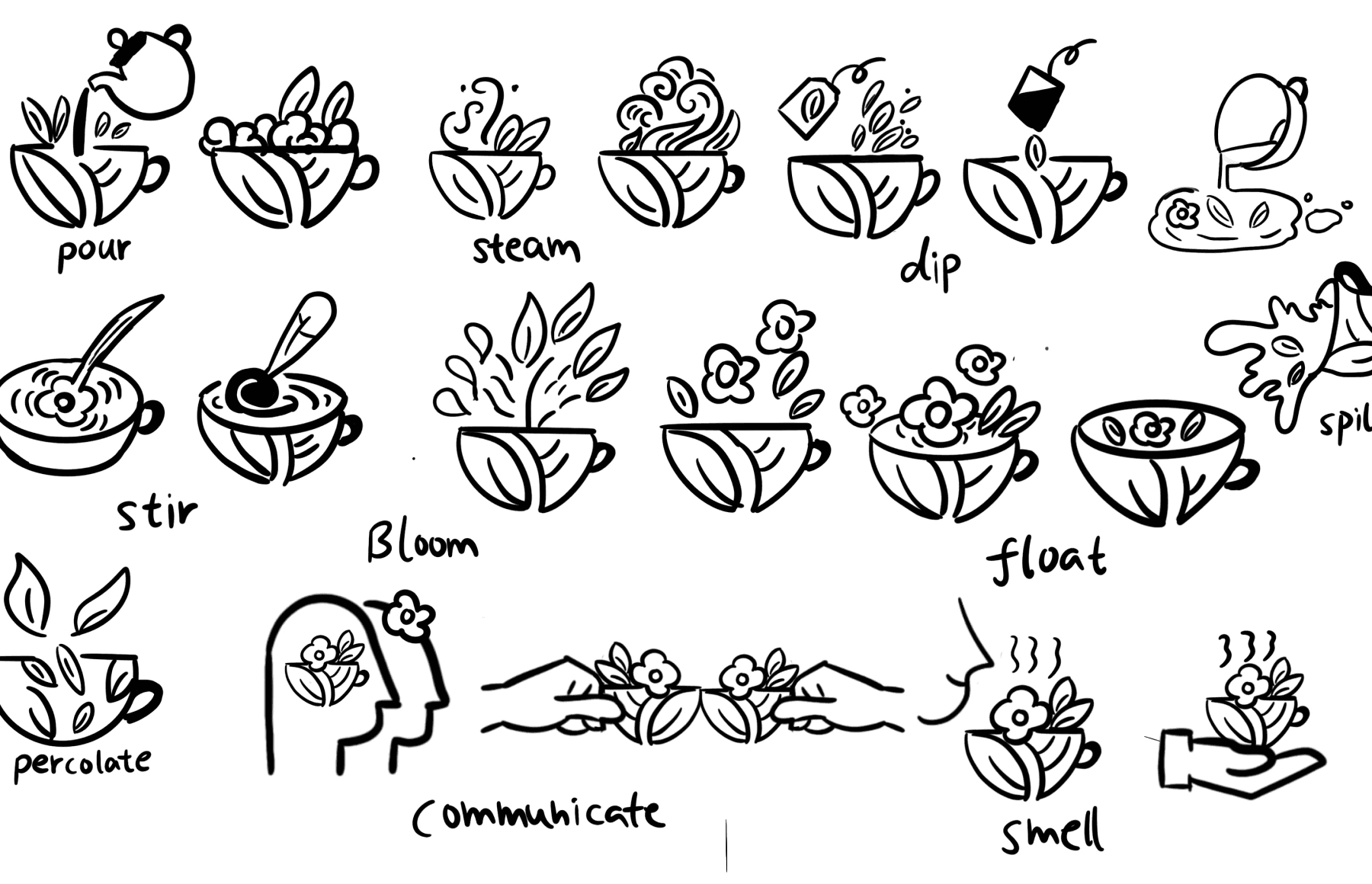 To create the most fitting logo, I sketched hundreds of icons and carefully selected the design that best represented the brand’s identity. Additionally, I incorporated literary rhetorical techniques, such as personification, metaphor, and parallelism, into the logo design to add depth and cultural significance. I also integrated verbs related to tea, such as “brewing,” “drinking,” “growing,” and “melting,” into the design process. These diverse actions enriched my imagination and infused the final logo with dynamism and vitality.