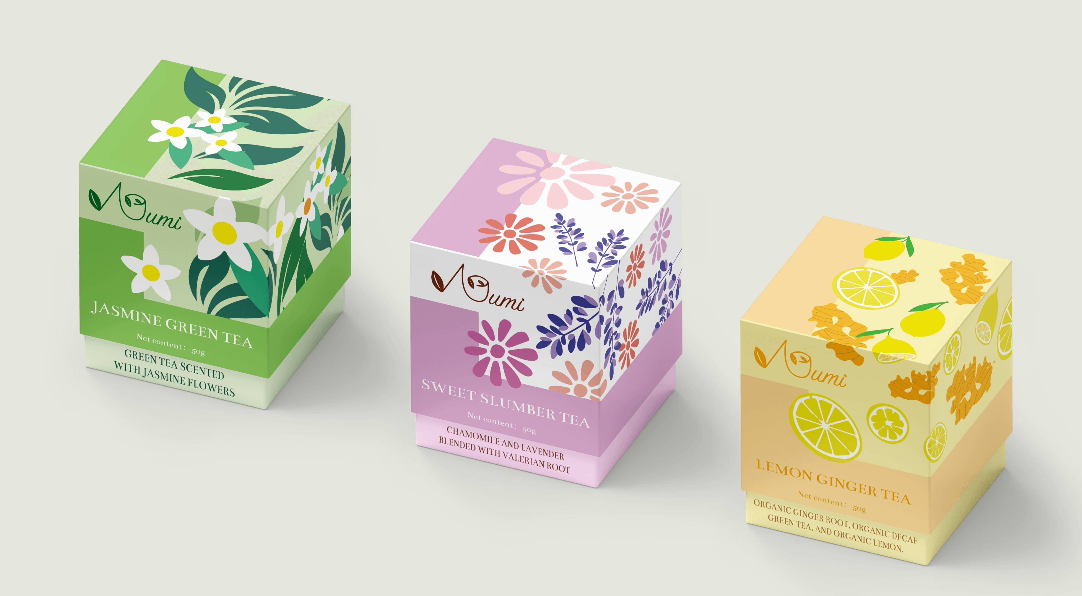 The redesigned packaging for Numi Tea aims to stand out in the market with its innovative and cohesive design. I not only focused on the exterior of the box but also carefully designed the interior, ensuring consumers enjoy a unified visual experience. To differentiate the brand, I chose bright and vibrant colors as the primary palette—something rarely seen in the market—and incorporated trendy flat-style illustrations. These design choices elevate the packaging, making it more premium and visually appealing, while also aligning with modern aesthetics and consumer preferences.